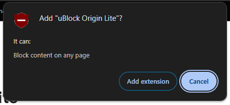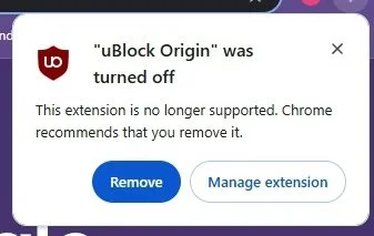 Go ahead and click “remove” to this prompt. uBlock Origin was one of our favorite browser extensions due to it’s excellent adware / phishing / ad blocking. Luckily there is a new version that is mostly intact, called uBlock lite.