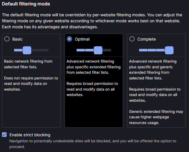 You will be asked to choose the default filtering mode, we advise “Optimal”.